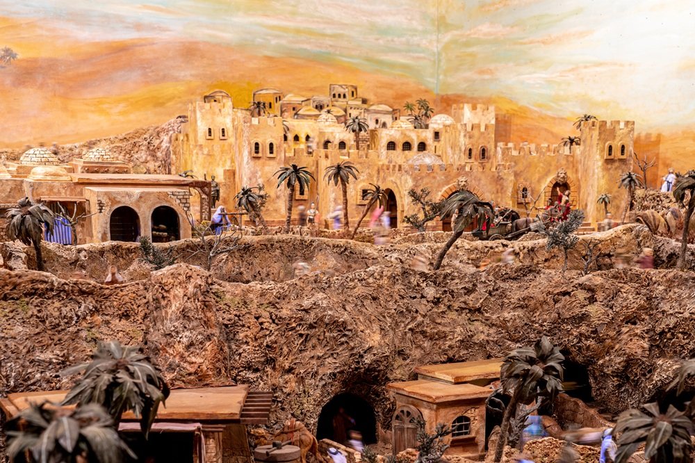 Il presepe è una riproduzione storica in scala nel rispetto delle proporzioni, una ricostruzione fedele in miniatura della Palestina, dei luoghi di Gesù e delle attività che facevano parte della vita quotidiana di allora; al centro la Natività, il tutto allietato da un sottofondo di suggestive musiche sacre e da una voce narrante ad illustrare i principali avvenimenti legati al Sacro Evento e alla vita di Gesù.