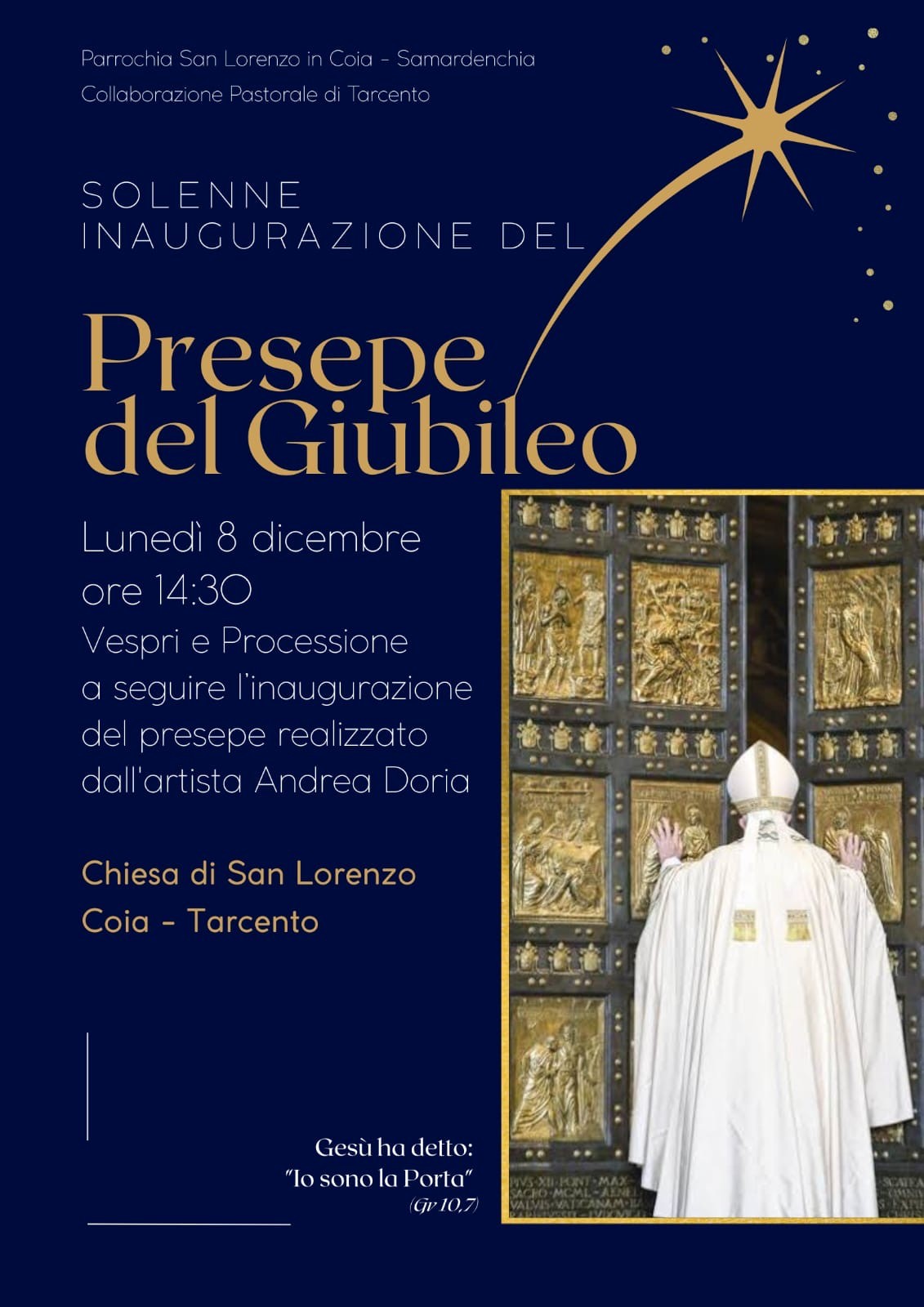 La 15^ edizione del Presepe di Coja, allestito nella Chiesa di San Lorenzo, trae ispirazione dalle celebrazioni per l'Anno Santo, in occasione della chiusura di questo intenso Giubileo.