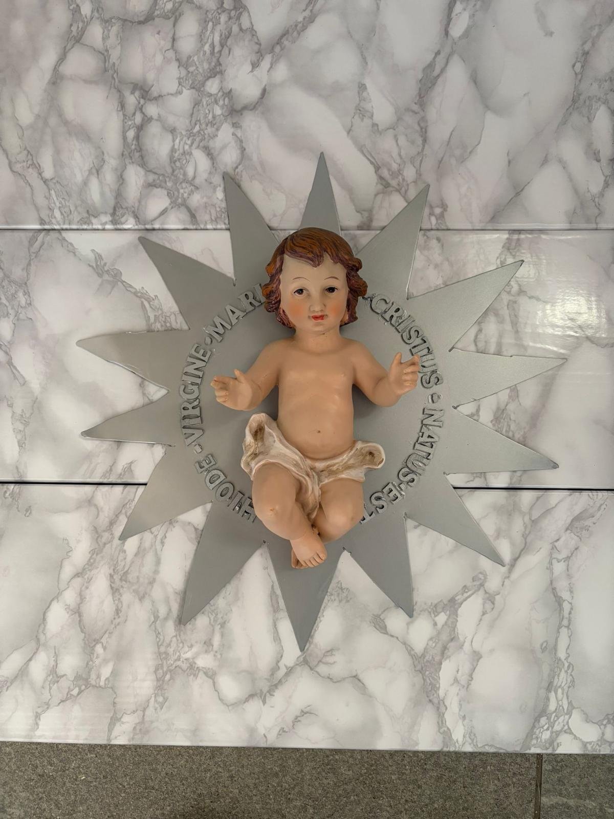 Nella Chiesa parrocchiale di Muzzana è stata preparata, sotto l'altare della celebrazione eucaristica, una copia della grotta di Betlemme dove avvenne il grande Evento, senza l'apposizione di drappi, ceri e candele che il pellegrino troverebbe se si recasse in quel luogo. La scelta della sobrietà è stata dettata dal desiderio di far convergere lo sguardo del visitatore sulla stella posata sul piano orizzontale della grotta, che nel periodo natalizio sorregge e custodisce il Bambin Gesù. È la sua gloriosa nascita che mostra concretamente la scelta di Dio, il Figlio nato e donato unicamente per Amore, a noi suoi Figli amati dello stesso Amore.