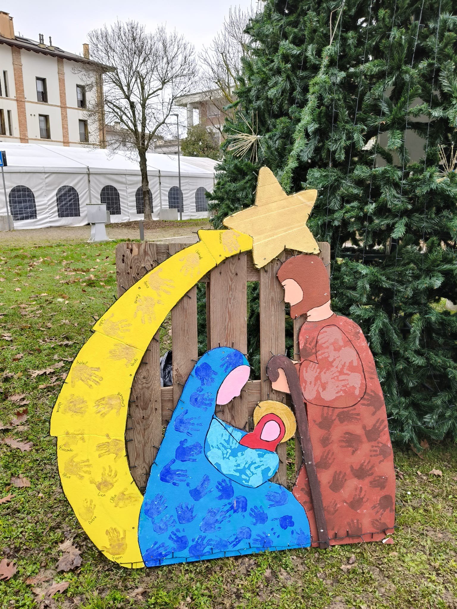 Presepio realizzato dai bimbi dei SED (asilo nido domiciliare) Zucca Magica 1 e 2 di Terzo di Aquileia, utilizzando materiali di riciclo, colorati con le loro manine.